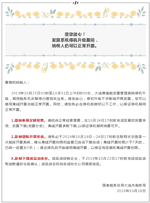发票系统停机升级期间,可正常开票