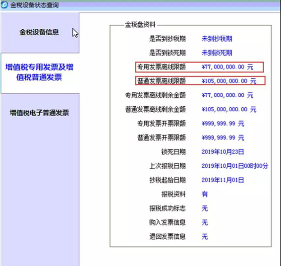 2、你还需核对所有可开票种(包括专用发票、普通发票以及电子发票等)的离线金额是否不为 0即可,如下图所示:
