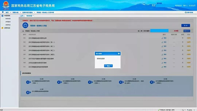 step 3:点击“数据初始化”-系统跳出相关提示,点击“是”—系统提示:“进项发票必须签名确认后方可进行申报。否则将导致申报失败!是否继续?”—点击“是”,系统显示:“初始化成功!”