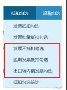 增加了不抵扣勾选和逾期发票抵扣申请与勾选的功能以及出口转内销发票勾选。